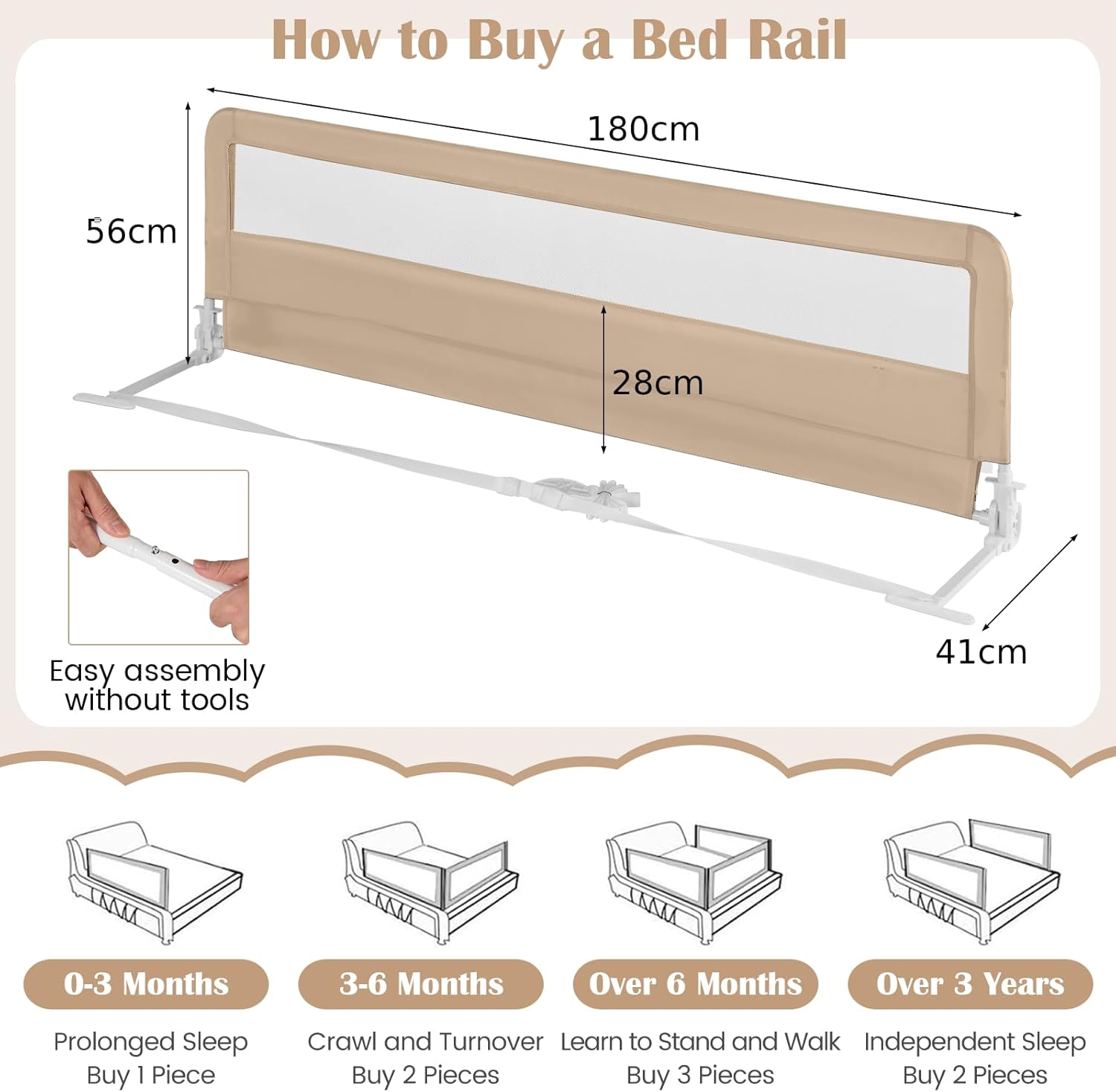 Barandal de cama para niños 180 × 56 cm plegable – COSTWAY