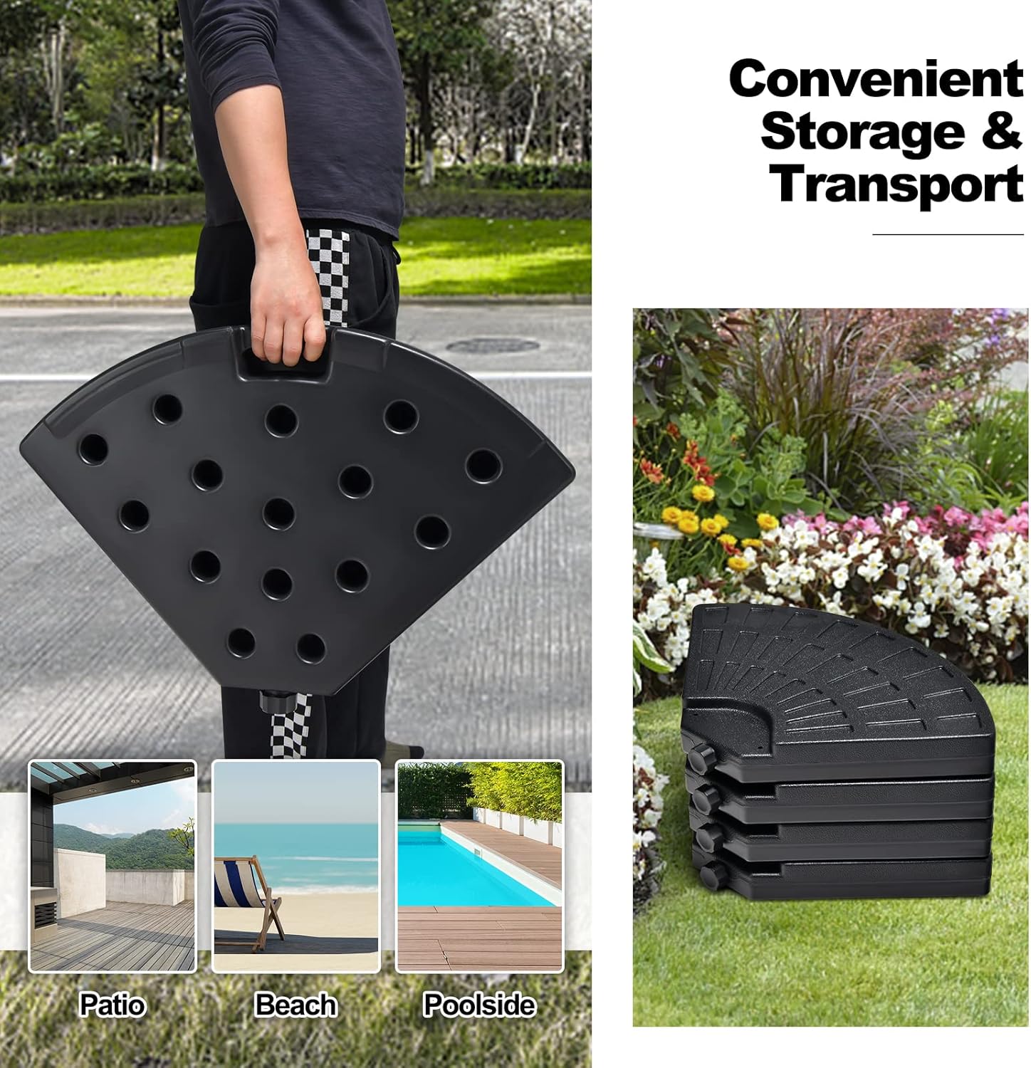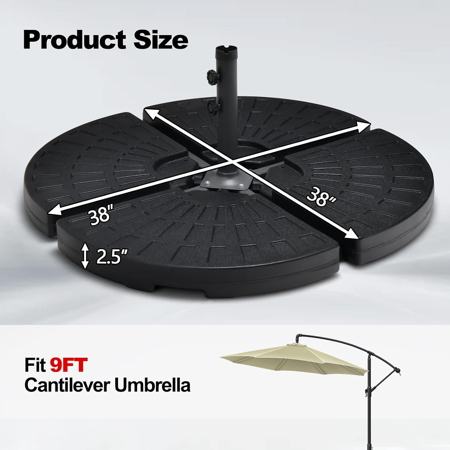 Base de soporte Tangkula con diseño en abanico, hecha para sombrillas cantilever de patio o terraza. Se coloca fácilmente debajo del mástil para darle estabilidad y seguridad, evitando que la sombrilla se mueva con el viento. Fabricada en material resistente al clima, ideal para uso exterior. Su forma moderna ocupa menos espacio y combina con distintos estilos de jardín.