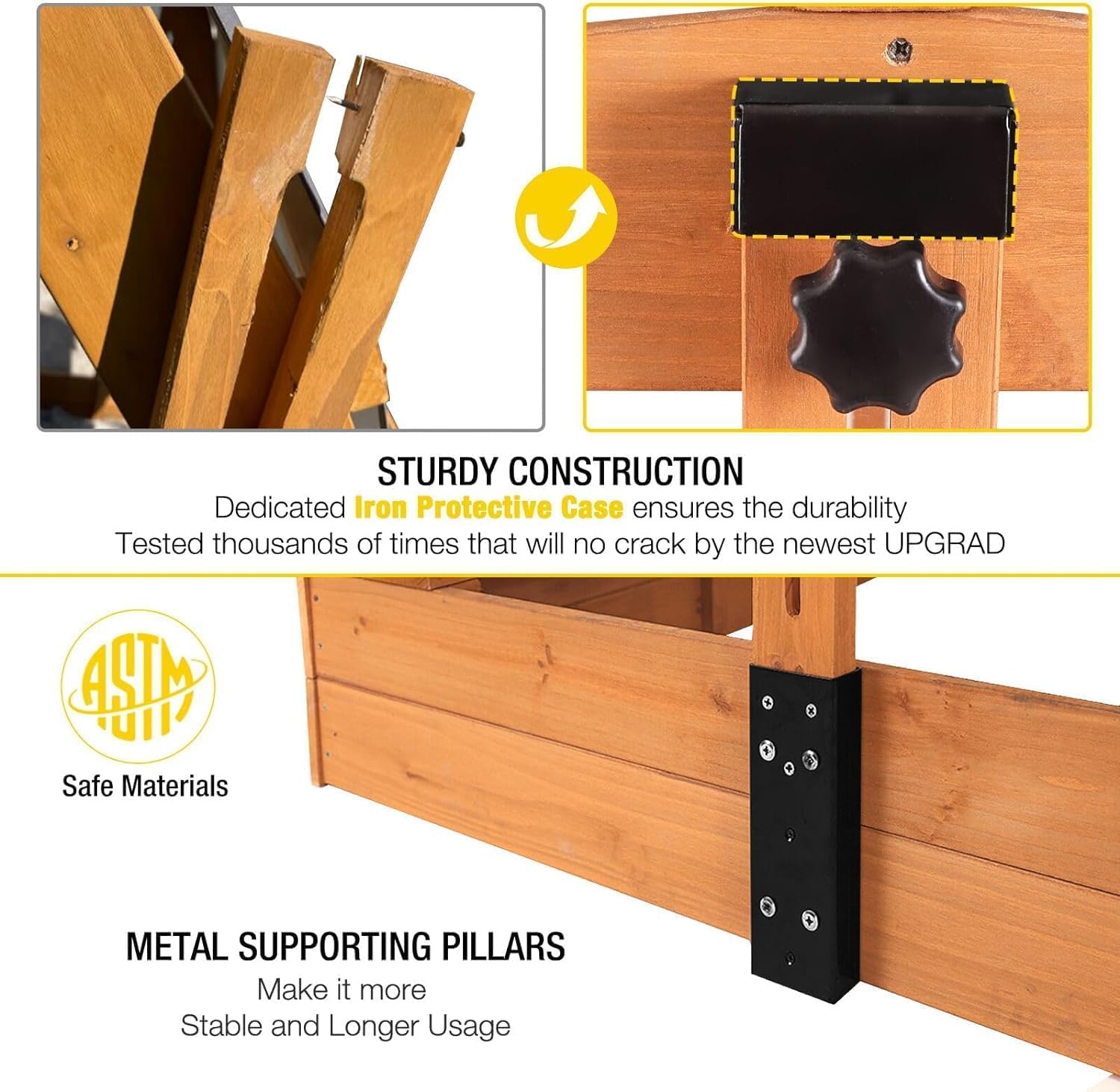 Caja de arena plegable para hasta 4 niños 120×120×132 cm con cubierta y bancos – Aivituvin