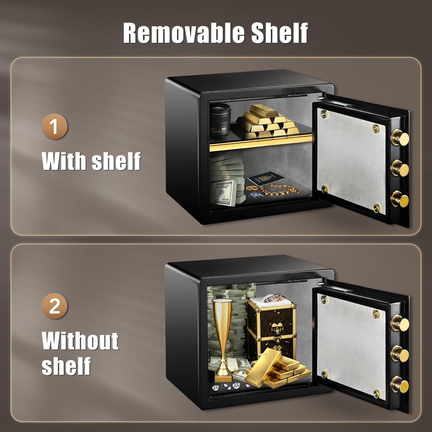 Caja fuerte robusta para uso doméstico u oficina, diseñada para proteger tus objetos valiosos frente al fuego y agua. Incluye cerradura digital, llave de respaldo y bolsa interior ignífuga para mayor seguridad.