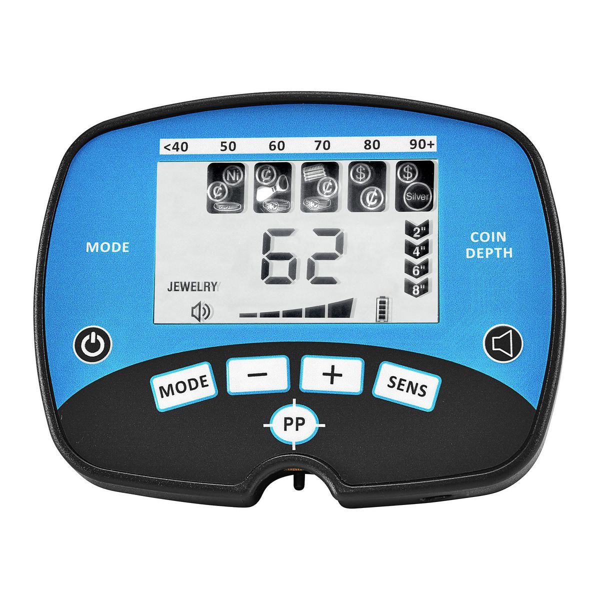 5 modos de búsqueda ajustables según tipo de metal o profundidad deseada.