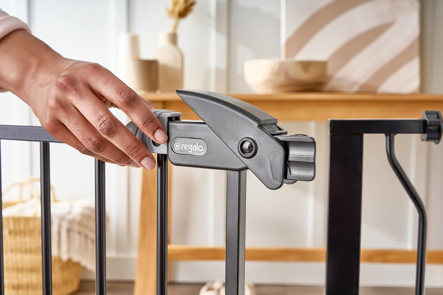 diseñada para ampliar espacios más grandes sin necesidad de cambiar el portón completo. Se instala fácilmente junto al portón original usando las mismas perillas de presión o montura a la pared. Fabricada en acero resistente y con altura de ≈ 76 cm, mantiene la seguridad de los niños y mascotas en pasillos o puertas anchas.