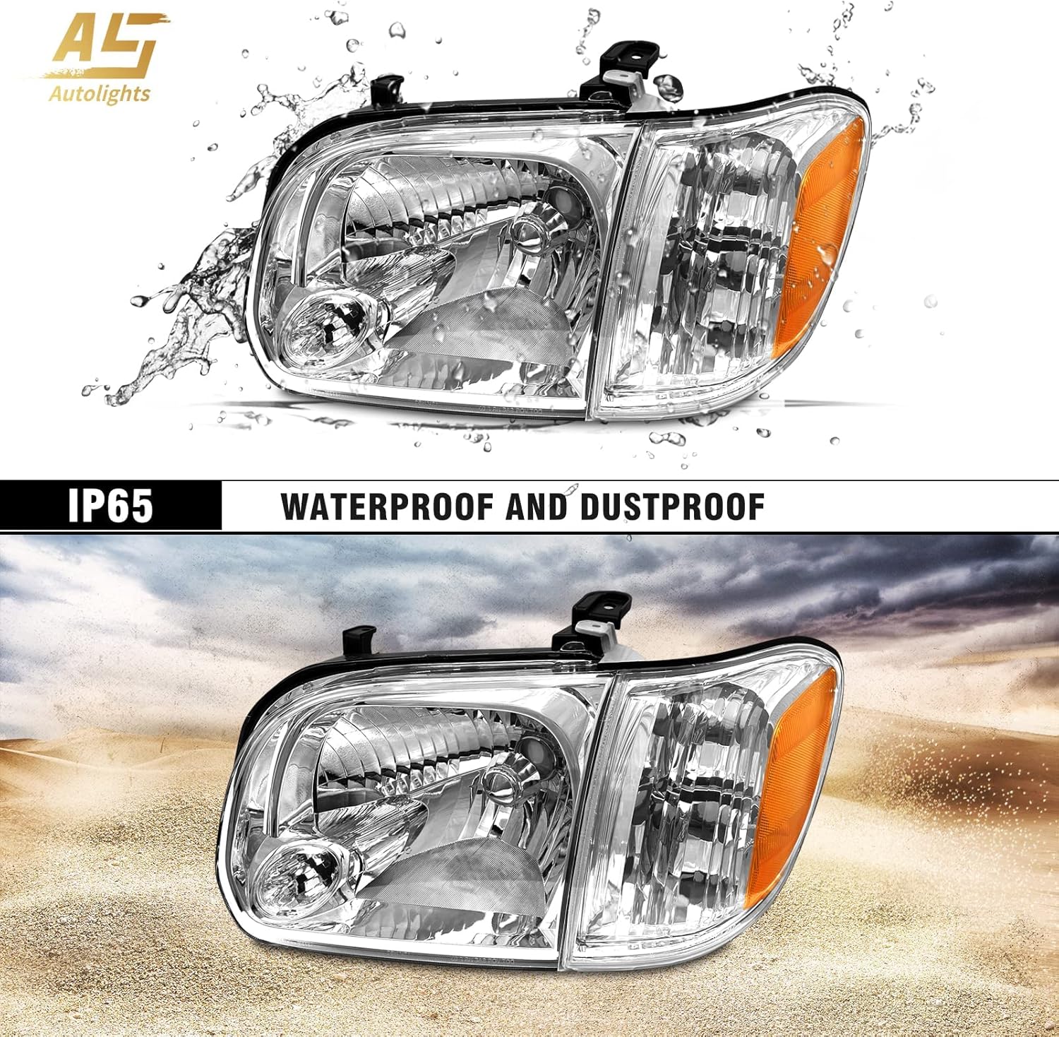 Reemplazo de faro frontal fabricado con lente de policarbonato y carcasa de cromado, sellado herméticamente (IP65) para ofrecer resistencia al agua y suciedad.