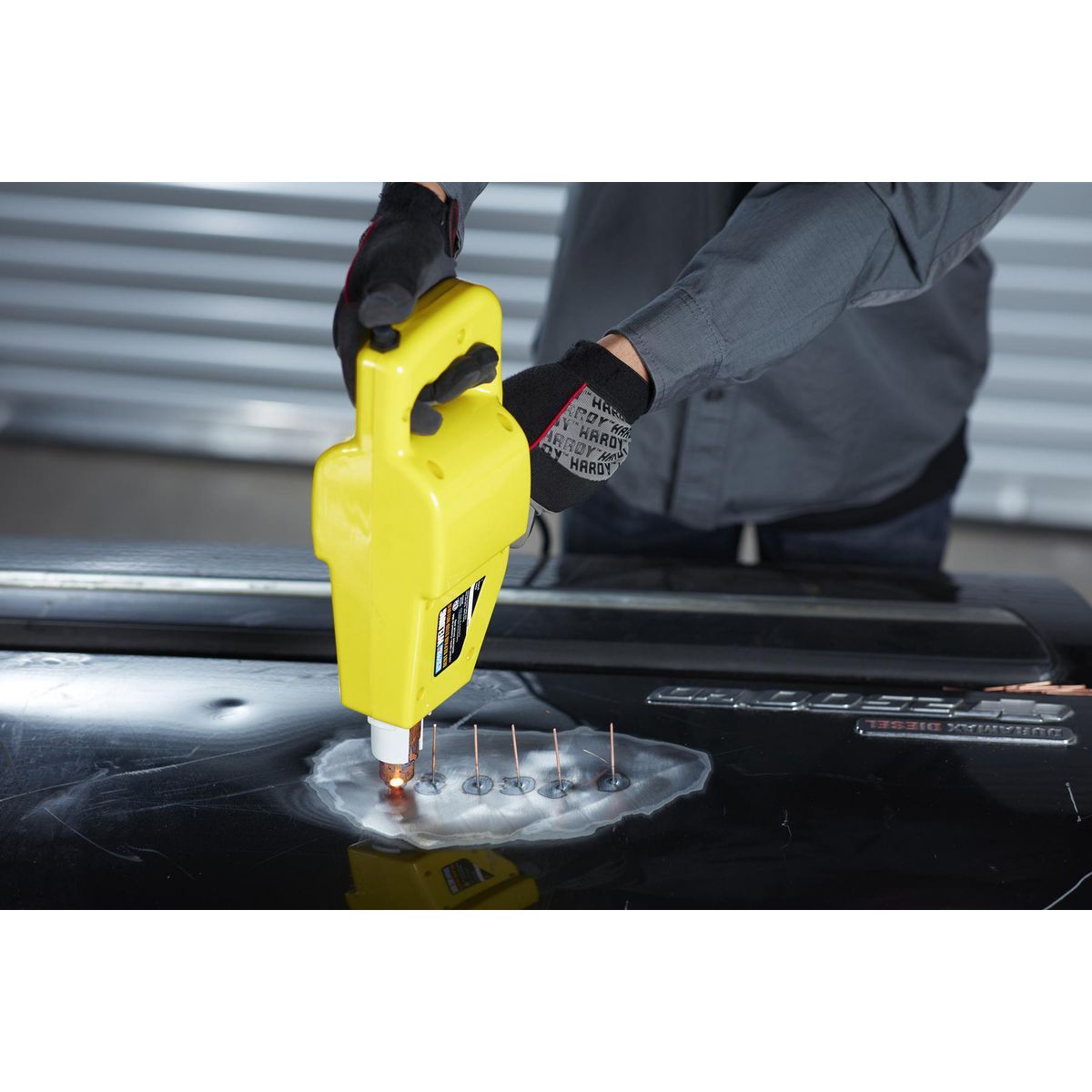 Kit completo para reparación de abolladuras en carrocería automotriz mediante soldadura de pernos. Diseñado para trabajos precisos en lámina de acero, permite restaurar superficies sin necesidad de desmontar piezas, ofreciendo una solución práctica para talleres, detailing y uso semi-profesional.