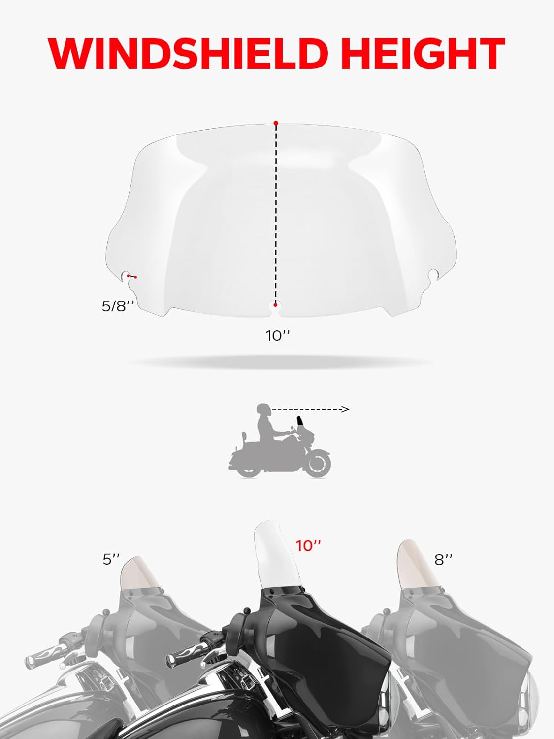 Parabrisas Curveado de 10-pulgadas para Harley Davidson Touring 2014-2023
