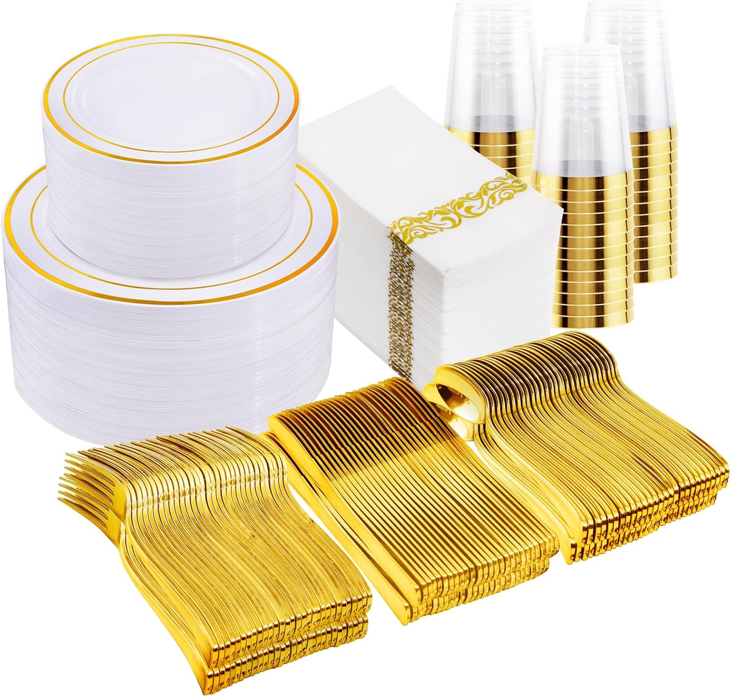 Juego de vajilla dorada desechable para Fiestas, mastrimonios catering, etc – 700 Piezas
