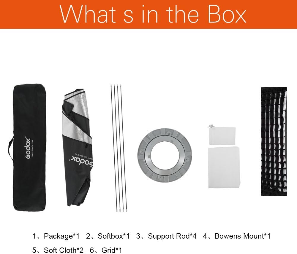 Softbox profesional diseñado para suavizar la luz de flashes de estudio. Cuenta con interior reflectante, rejilla honeycomb para controlar la dispersión y montura Bowens compatible con muchos accesorios de iluminación.